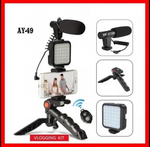 Product details of AY-49 Video Making Kit Wireless Remote Control Vlogging Tripod Microphone, Led Light, Mobile Holder All-In-OneModel Number: AY-49Use: For smart phoneMaterial: ABSPrivate Mold: NOProduct name: Live Streaming EquipmentTripod: Non-slip TabletopTripod Support: Universal LED Video LightStyle: Microphone, Live microphoneControl: Wireless Remote ControlApplication: Smartphone, DSLR, Mirrorless, Camcorder, Audio Recorder, GoProType: Vlogging kitStyle: Handheld MicrophoneHere are the top search tags for the "AY-49 Video Making Kit Wireless Remote Control Vlogging Tripod Microphone, LED Light, Mobile Holder All-In-One":
