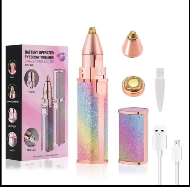 2 In 1 Flawless Facial Hair Remover | Rechargeable Waterproof Shaver With Led Light For Eyebrow Upper Lip Chin Armpit (random Color)